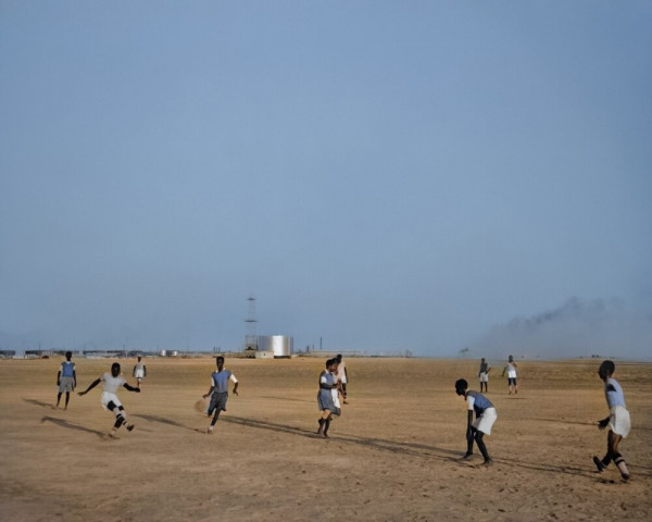 Суданские нефтяники играют с аденцкими рабочими во время чемпионата по футболу в Дхаране, Саудовская Аравия, около 1945 года.