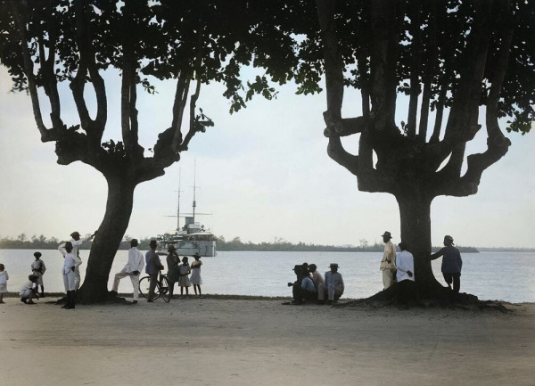 Прибытие парохода "Хертог Хендрик" на реку Суринам близ Парамарибо. Суринам, 1928 год.