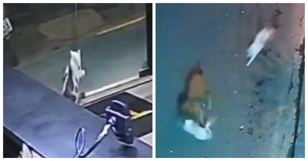 В Бразилии кот спас соплеменника, на которого напала собака. Камеры запечатлели акт героизма.
