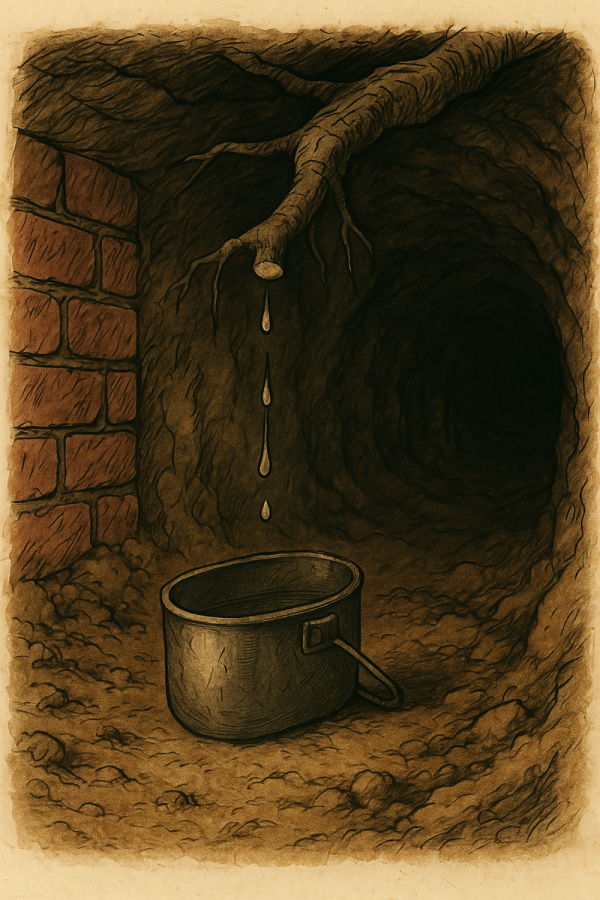 Рация - молчит. Щёлкаешь - в ответ тишина и хрип. Будто кто-то на том конце дохнет, но не признаётся. Глубоко мы. Или нас уже просто вычеркнули. Отрезали, забыли.Серёга помог снять броню. Под рубашкой - дыра, мясо вспухло. Не фонтан, но и не критично. Пока не двигаешься - жить можно. Разрезал одежду, залепил чем-то липким. Всё по-полевому. Как медик учил.Нога... хуже. Там, где ступня, что-то порвано. Как будто внутри хрястнула резинка. Встать - не вариант. Только валяться.Погреб был... как бы это - почти уютный. Если бы не жуткий запах. Кирпич старый, красный, побелка отвалилась. Стеллаж с банками варенья, в углу - бочка. Из неё тянуло так, будто кто-то пытался заквасить смерть.Серёга заглянул в бочку, отшатнулся.- Это уже не огурцы. Это новая форма жизни.- С глазами? - хмыкнул я.- Скоро заговорят.Вскрыл банку варенья - крыжовник. Крышка ржавая, банка пыльная, внутри засахаренная масса. Плевать. Есть-то всё равно почти нечего.Что у нас было?- Полдюжины банок варенья.- Одна злая бочка с маринованными мутантами.- Немного воды, литра два.- Один сухпай на двоих.- И шансов, как у мухи под стеклом.Наступила ночь. Мы просто легли и слушали. Пыль, дыхание, стены.Поспали.Наутро - снова "выбухи" сверху. Пыль посыпалась с потолка. Что-то взрывалось - близко, но мимо. Будто мир орал, а мы были в вакууме.- Пора что-то делать, - сказал Серёга.- Например? -- Плиту не сдвинем. Только если краном.- А у нас, как назло, нет крана, - буркнул я.Придумали: копать. Вдоль лестницы, наружу. Через стену - кирпичную, старую, возможно, поддастся.И начали.Ножами долбили швы, выковыривали цемент. Раствор - крепкий, будто делали его для вечности. Кирпичи не сдавались. Пальцы сбиты, ногти с трещинами, запястья ноют.Четырнадцать часов.Четырнадцать, мать их, часов.Наконец - пролом. Узкий, острый. Пролезть можно. А за ним - глина. Красная, сухая, твердая. Серёга полез первым, копал лопаткой, я сгребал землю и оттаскивал в угол, где раньше валялась гнилая картошка.День. Второй. Потом третий.И вот - глухой "тук".- Сука. Корень, - прошипел Серёга.Толстенный, как труба. Уперся поперёк. Прямо в наш ход. Тянется вдоль стены и уходит вбок. Под корень не подлезть. Обойти - никак.Серый начал долбить. Лопаткой, тупо, яростно. Глина сыпалась в глаза, руки тряслись. Жажда мучила. Тошнило от духоты. Удары становились реже, слабее. Силы уходили, как вода в песок.Я лежал, жевал мерзкий огурец, думал о дочках. Где-то они, наверное, завтракают, смотрят Малышариков. А я тут. С плесенью и корнями.Вечером Серёга выполз. Без слов. Рухнул на пол. Лежал, спиной к стене. Дышал. Живой. Но будто выжжен изнутри.А утром...- Стой, тсс, - прошептал он. - Слышишь?Я прислушался. Кап.Из обрубка того самого корня - капала влага. Котелок подставили. Сидели, как два идиота, слушали. Кап. Кап. Как музыка. Лучше, чем любые песни.Минут через сорок - на дне чуть воды. Мутноватой. Прохладной. Живительной.- Пей, - сказал Серёга, протягивая мне.Я сделал два глотка. Мир стал мягче. Не легче, но... мягче. Как будто ты внутри одеяла. Сухого. Тёплого.Вот это и есть настоящая вкусная вода. Ни один фильтр такого не даст - только отчаяние и ожидание.Решили: сегодня не копаем. Ставим котелок, набираем ещё.Воды мало, но надежда - капля за каплей - вернулась.
