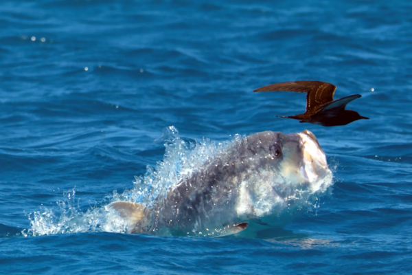 Каранксы даже в небе стремятся установить своё господство! Улуа - одна из немногих рыб, что целенаправленно охотится на птиц. Причем делает это на лету! Улуа не просто бросается в погоню, а проводит сложный математический расчет: куда направляется добыча, сколько она весит, как много пролетит за единицу времени - всё это рыб инстинктивно анализирует, после чего совершает смертоносный бросок. Не такие уж они и тупые, получается!