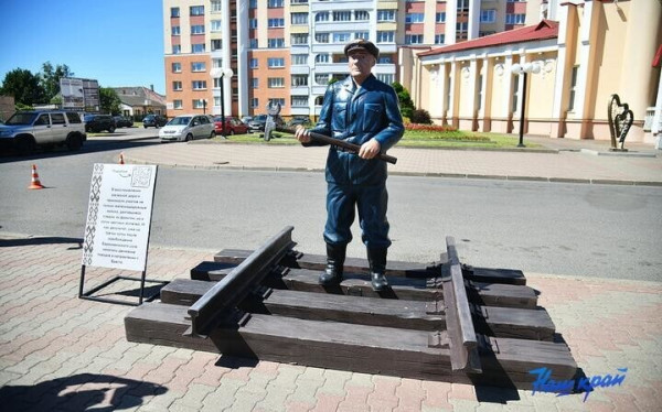Данная скульптура железнодорожника - это одна из составляющих инсталляции "Город трудовой славы. 1941-1945 гг.", установленной возле ЗАГСа. Свидетели утверждают, что чуть позже, оттолкнувшись от одного из автомобилей, мужчина поплыл обратно в место своего постоянного обитания. Там добавили, что "чуть позже, оттолкнувшись от одного из проезжающих автомобилей, она проплыла обратно в сторону загса".В итоге скульптуру словили работники ЖКХ.