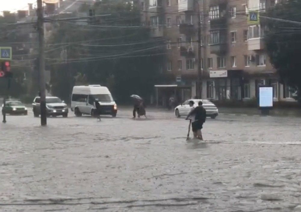 В Туле два любовника пытались форсировать подтопленную дорогу на электросамокате