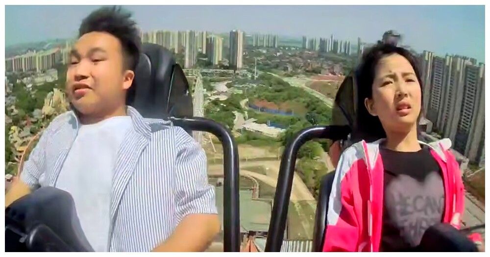 Девушка решила прокатиться с молодым человеком на аттракционе. Героиня ролика не ожидала, что большую часть поездки она проведет без сознания.