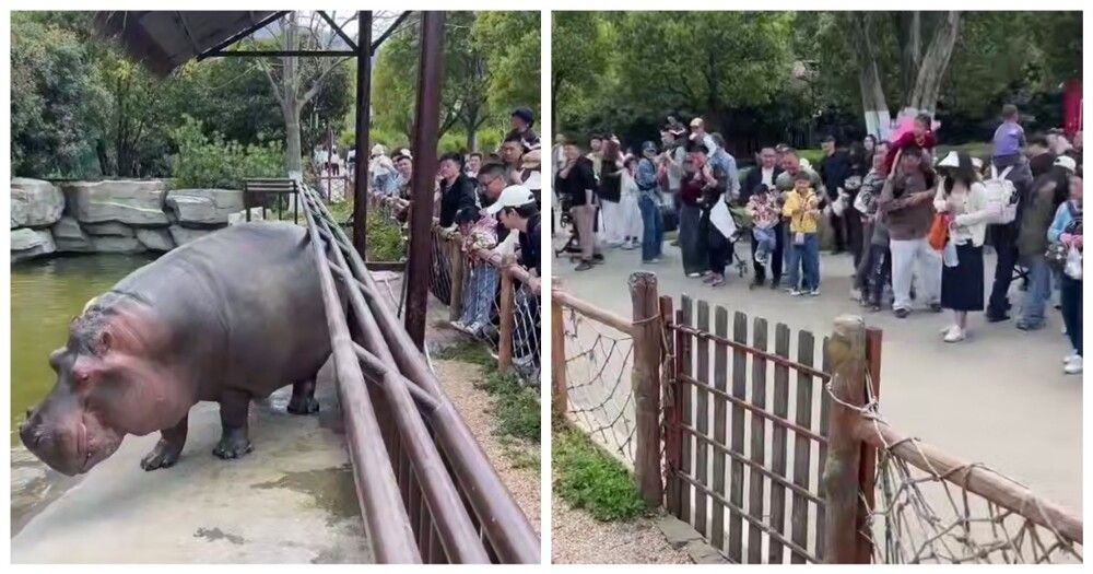 Бегемоту по имени Цзюмэй, обитающему в китайском зоопарке, настолько надоели посетители, что он устроил им "газовую атаку". Она продолжалась в течение нескольких секунд.