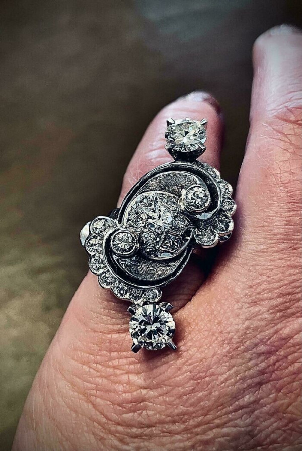 Мама показала кольцо ювелиру. Он сказал, что это золото с двумя крупными бриллиантами. Каждый камень по карату.