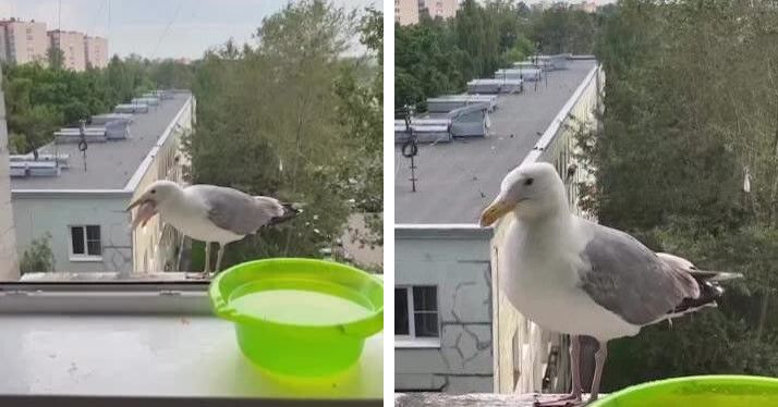 Птица полакомилась и спокойно запила добычу водой из тазика, игнорируя комментарии шокированных хозяев квартиры.