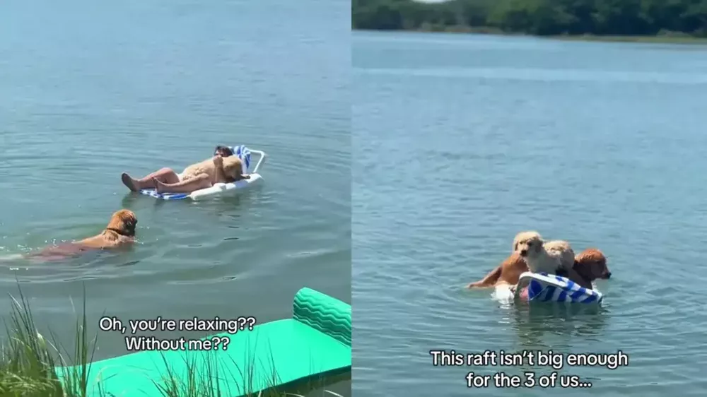 Идём ко дну: парень показал отдых с двумя золотистыми ретриверами