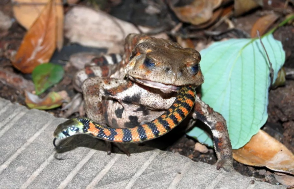 Рептилия добывает яд не только для себя, но и для своих детей! Потомство появляется на свет уже вооружённым, и это заслуга исключительно матери. Отец вносит свой вклад лишь единожды, с мая по август, когда проходит сезон размножения. После спаривания он уползает дальше искать самочек по феромонам, а будущая мать начинает интенсивно охотиться на ядовитых жаб.