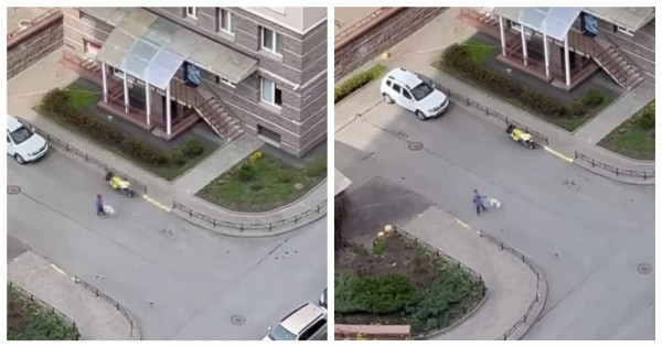 Жители ЖК "Юбилейный квартал" в Санкт-Петербурге недавно наблюдали из своих окон странную сцену. Юный хозяин животного раскручивал питомца на поводке вокруг себя.