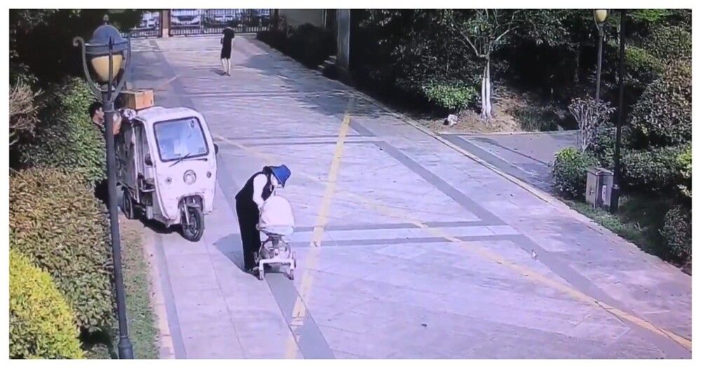 Курьер отправился доставлять очередную посылку и не заметил женщину, которая остановилась рядом с его транспортным средством.