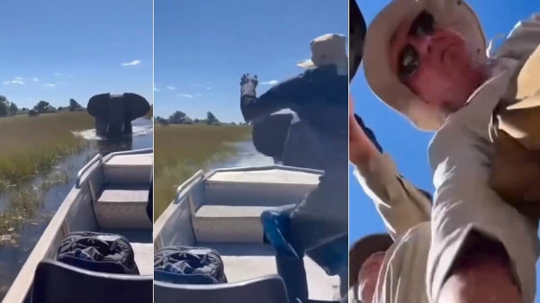 Слон внезапно атаковал лодку с туристами во время экскурсии по реке Окаванго. Эпизод попал на видео