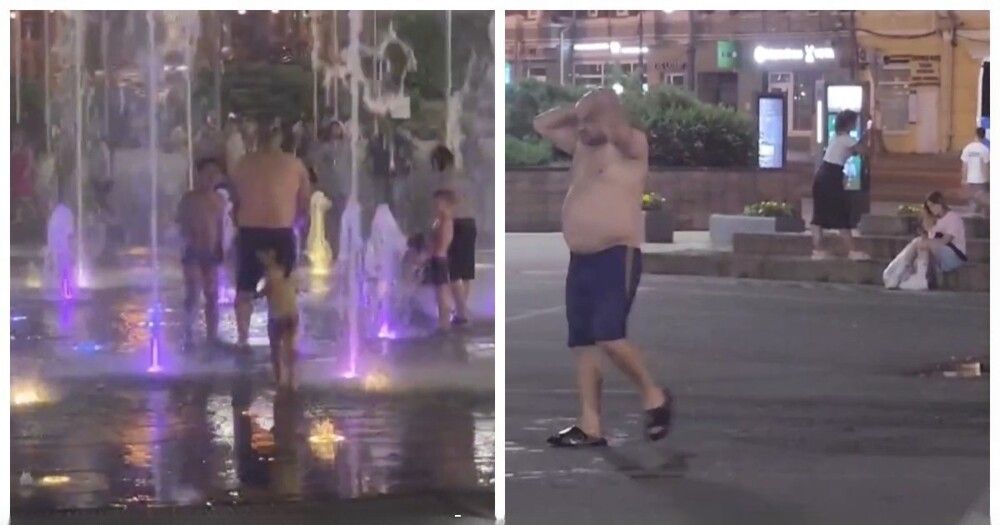 На кадрах видно, как взрослый мужчина без стеснения энергично намыливается в струях муниципального фонтана, словно находится в собственной ванной комнате. Зрелище происходит на глазах прохожих, включая владивостокцев с детьми.