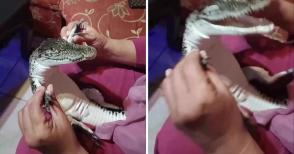 Его хозяйка рассказала, что играет с ним как с маленьким ребёнком - гладит, ласково разговаривает и даже катает на руках. Пользователи пишут: "Никогда не думал, что крокодил может быть таким милым".