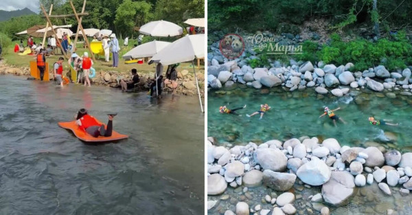 Это "ленивый" вариант обычных сплавов: без риска, сильный волн и гребли. Желающие "поплавать как сосиска" надевают спасательные жилеты и сигают в реку с небыстрым течением, иногда на пенных матрасах. Впервые такой формат стали предлагать туристам в 2024 году, но этим летом он стал настоящим хитом.