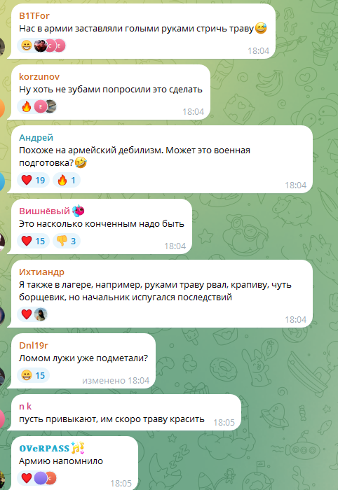 А в соцсетях заметили, что, возможно, так детей готовят к армии. Осталось научиться разгонять ломом лужи, катать квадратное, таскать круглое и красить траву в зелёный цвет.
