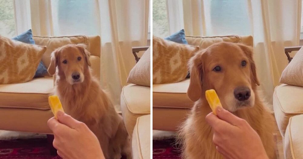 Автор видео решила проверить своего пса на силу воли. Она сделала вид, что уснула с куском сыра в руке и стала ждать.