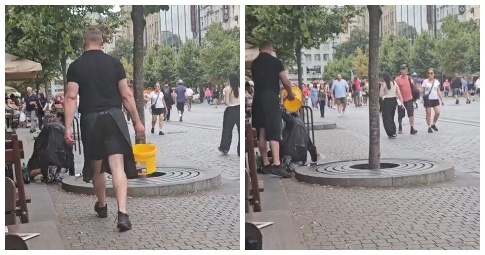 Вот так в Праге персонал пивного ресторана гоняет всяких бродяг, которые приходят со своими пивом и пристают до гостей, мешая наслаждаться отдыхом.
