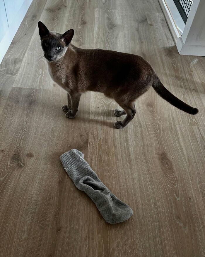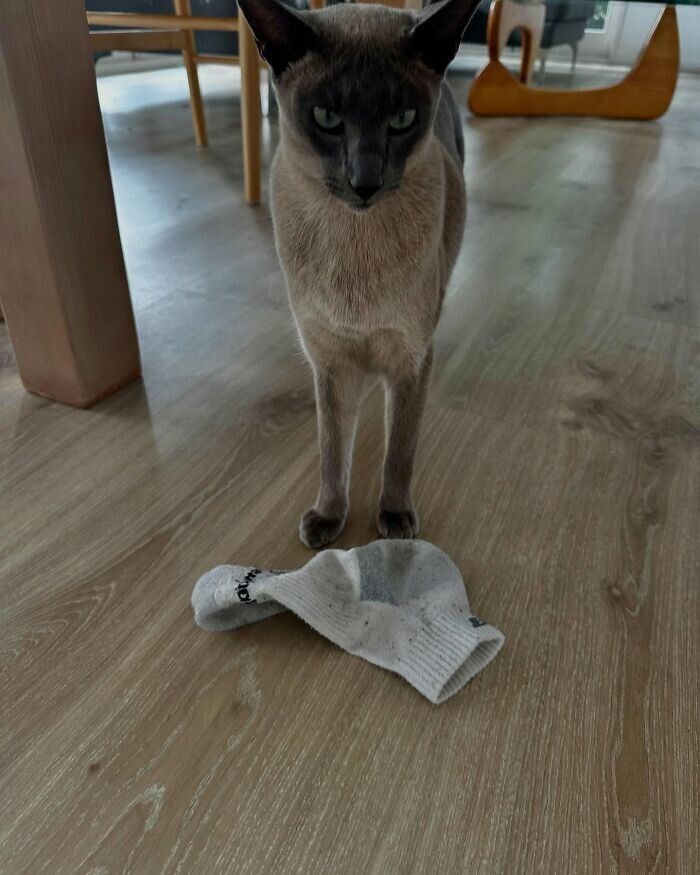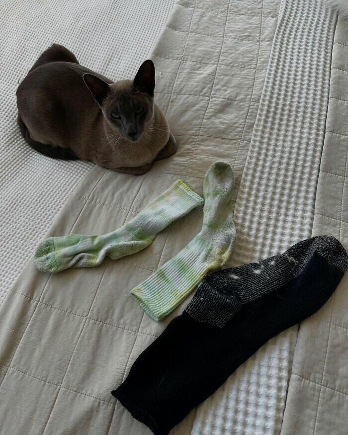 Хелен Норт, хозяйка Лео, рассказала, что сначала кот приносил домой чужие носки - много носков. Со временем его коллекция пополнилась и другой одеждой, особенно по выходным, когда соседи вывешивали белье."Его рекорд - 9 вещей за день. Это было солнечное воскресенье, и мы думаем, что все успели постирать белье. Он был в восторге!" - делится Норт.