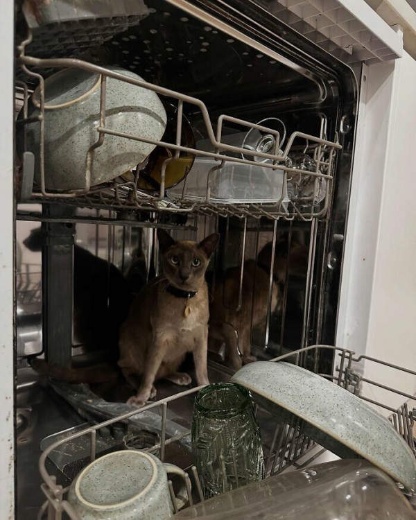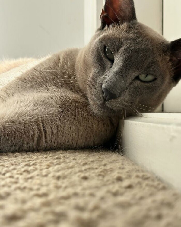 Конечно, после тяжёлого дня кот восстанавливает силы. Он обожает лежать у хозяйки на коленях и мурлыкать, словно трактор."Он очень ласковый и всегда хочет участвовать во всем, что бы мы ни делали. Как и большинство котов, он любит поспать на солнышке - особенно после долгой охоты за нижним бельём!"