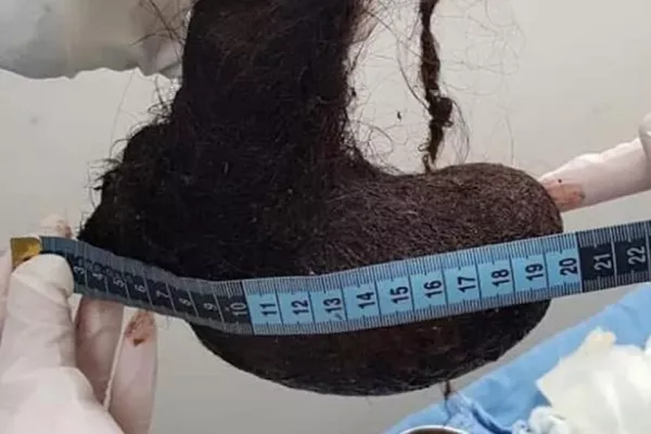 Врачи обследовали ребенка и обнаружили в его животе огромный ком из волос, слизи и разлагающихся кусков пищи. Они успешно вырезали его из желудка девочки. Вскоре она поправилась и отправилась домой.Синдром Рапунцель - редкое состояние, при котором у пациентов, поедающих свои волосы, ком полностью заполняет желудок и проникает в кишечник. В мире было зафиксировано не более сотни подобных случаев.