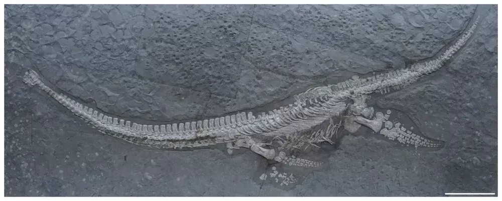 Учёные отмечают: "Анатомия и таксономия этого вида никогда не исследовались подробно".Свен Сакс из Музея естественной истории в Билефельде, ведущий автор исследования, добавил: "Мы тщательно изучили останки и обнаружили необычное сочетание скелетных характеристик, которые явно отличают этот вид от всех известных ранее плезиозавров".Они обратили внимание на несколько особенностей существа. Во-первых, они отметили длину кости в задней части черепа. Во-вторых, у него была очень длинная шея из 43 позвонков. В-третьих, шипы на задней части шеи и передней части груди были длиннее.Сакс и его коллега, доктор Даниэль Мадзия из Польской академии наук, полагают, что сланцы Посидонии скрывают больше свидетельств разнообразия морских рептилий благодаря удивительной сохранности.Мадзия пояснил: "Это открытие проливает свет на загадку эволюции морских экосистем в критический период истории Земли. Ранний тоарский период, когда жило это животное, ознаменовался значительными изменениями в окружающей среде. В частности, произошло масштабное океаническое бескислородное событие, которое повлияло на морскую флору и фауну по всему миру".