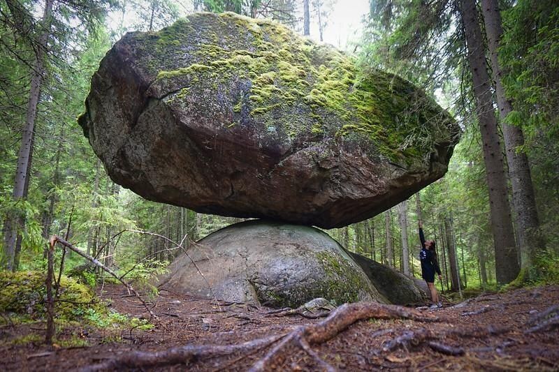 Куммакиви - это валун весом 500 тонн в Финляндии, который вот уже 11 тысяч лет балансирует на вершине другой скалы.