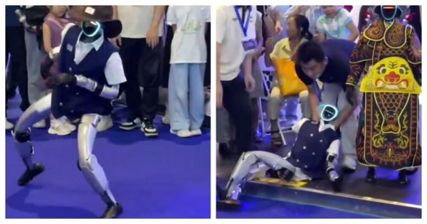 Робот в шляпе начал задорно плясать перед жителями Китая. В какой-то момент он решил перейти к брейк-дансу