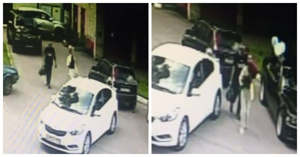 Семья принесла цветы, чтобы поздравить родственницу с выпиской, и ненадолго оставила их на машине. Проходящая мимо женщина забрала букет себе. При этом идущий с ней молодой человек решил её не останавливать.