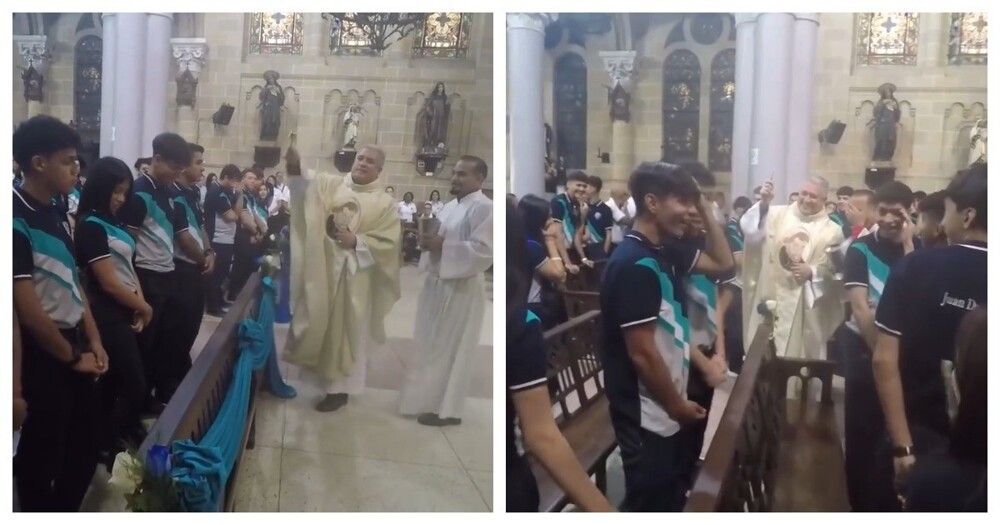 На видео попал курьезный эпизод, произошедший в храме. Посетитель запечатлел, как подростку немного досталось во время окропления святой водой.