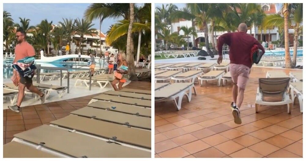 Отдыхающая по имени Аланна смогла запечатлеть, как мужчина с полотенцем бросается к лежакам, а справа от него бегут другие туристы. Пользователи сети назвали такое поведение позорным. "Просто стыдно это видеть", "Почему люди так хотят лежать у бассейна, если есть океан?" - писали юзеры.Похожие забеги до лежаков, снятые туристами в других отелях.