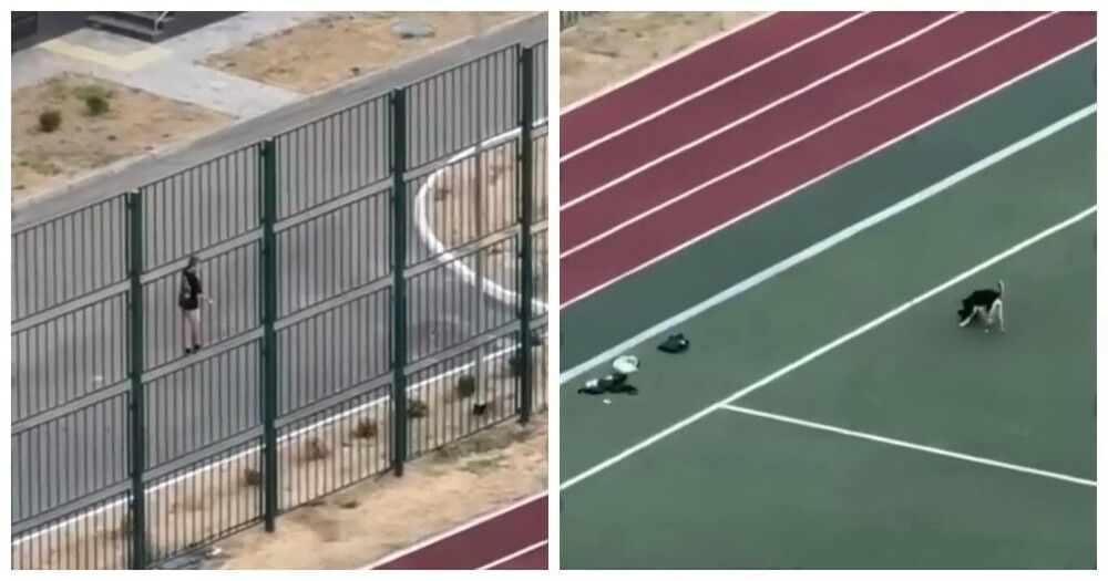 Мальчику пришлось почти полчаса держаться на металлическом заборе, пока собаки внизу раздирали его ботинки, портфель и другие вещи.