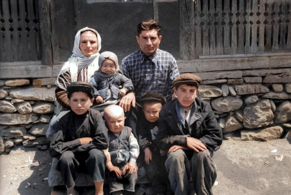 Семья учителя Уруджали Исламова. Рутульцы. Дагестан, Рутульский р-он, селение Лучек, 1952 год.