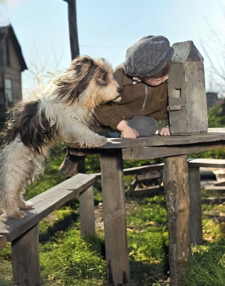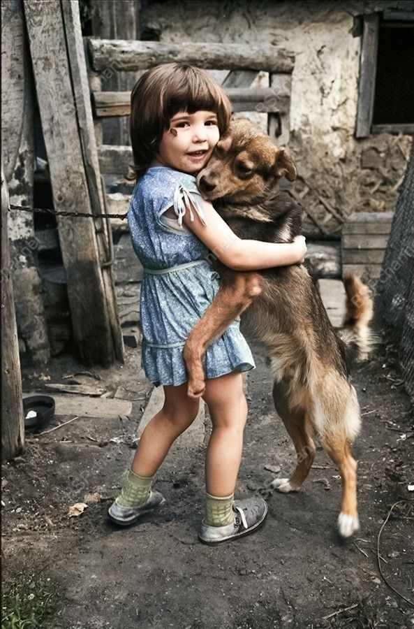На протяжении всей истории войн собаки играли важную роль в армиях разных стран. В особенности значимой была их служба во Второй мировой войне, когда они стали не просто помощниками, а настоящими бойцами, спасшими тысячи жизней. Собаки служили в различных ролях - от санитаров до разведчиков и сапёров. А иногда просто тем, кто помогает остаться человеком в трудных условиях. К сожалению историю этой фотографии найти не удалось.