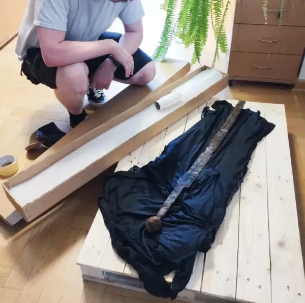 Рыбак принёс артефакт в столичное Управление по охране памятников, как того требует польский закон. Ведомство сообщило, что оружие передали в мастерскую по консервации. Государственный археологический музей назвал меч "сенсационной находкой". Его ждёт "интенсивный процесс консервации": на протяжении шести недель он будет "обрабатываться" специальным раствором, который удалит хлориды, после чего его тщательно промоют, чтобы сбалансировать уровень рН, и механически очистят от песка и почвы. Меч покроют защитным слоем и только тогда передадут команде археологов для дальнейшего изучения.