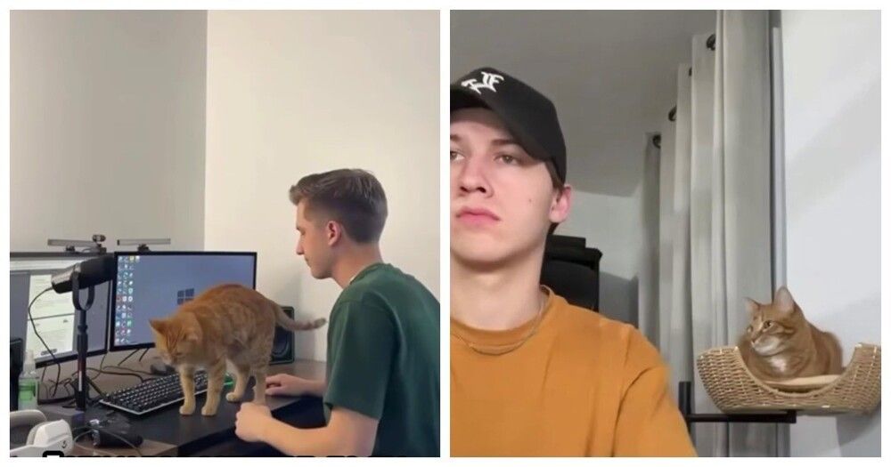Лежанка для котов, хорошо подходящая людям, чьи коты любят забираться на компьютерный стол. Пушистый питомец больше не помешает работать и играть в игры!