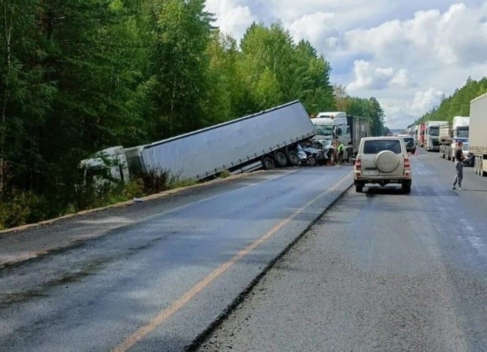 17 августа на 267 километре трассы Екатеринбург - Тюмень возле Тугулыма в месте проведения дорожных работ контейнеровоз "Ситрак" столкнулся с автомобилем "Чери", который отбросило на большегрузную фуру "Ман". Удар был такой силы, что легковушку смяло, а фура съехала в кювет. Погибли четыре человека, которые находились в китайском кроссовере: 39-летняя женщина-водитель, её 39-летний супруг и родители 62 и 62 лет, все жители Тюмени.