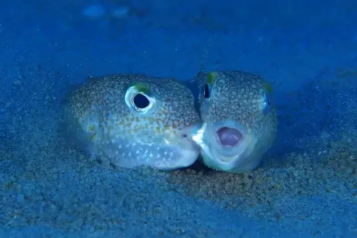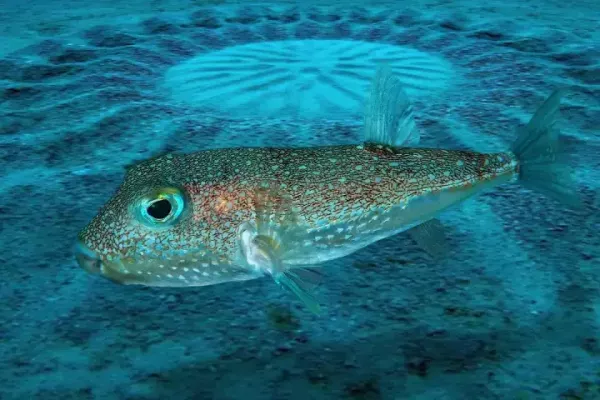 Знакомьтесь - белопятнистый иглобрюх (Torquigener albomaculosus). Эта рыба демонстрирует удивительно человеческую психологию в вопросах недвижимости. Самки этого вида выбирают партнера, оценивая качество его "владений".Чтобы произвести впечатление, самец несколько дней трудится без устали, используя свои плавники для создания уютного гнезда диаметром до двух метров, украшенного ракушками и камешками. Однако дело здесь не в простой роскоши.