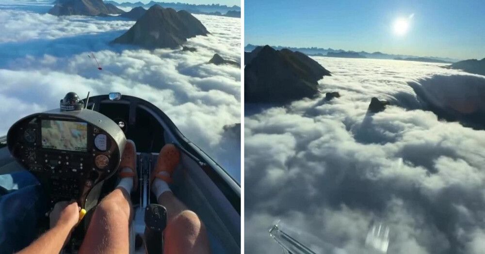 Во Франции пилот показал, как «падают» облака возле гор