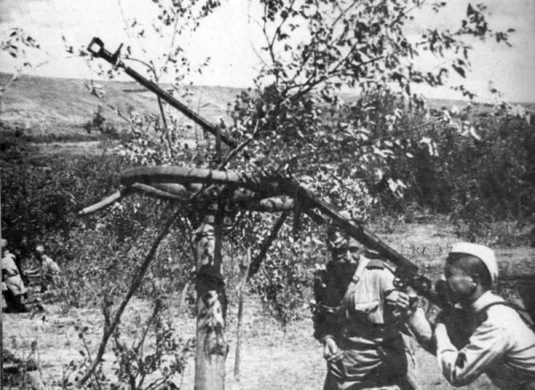 Но это не все. В конце войны противотанковые ружья устанавливались на автомашины и даже мотоциклы, и из них стреляли на ходу. Тем более убойная сила калибра 14.5 мм порой была кстати, для подавления огневых точек например. Но что самое интересное, ПТР стал отличным средством ПВО. Да, для борьбы с авиацией в конце войны эти ружья использовались. Одним из первых стал стрелок 284-й сд Дмитрий Шумаков, который ещё во время Сталинградской битвы начал использовать ПТР для стрельбы по воздушным целям и даже разработал схемы и способы. Далее идея развивалась и ПТР устанавливали на специальные деревянные крепления на бруствер окопов. Так же их ставили на вращающуюся ось, основанием которой могло служить тележное колесо, что позволяло вращать ружье на 360 градусов и сбивать воздушные цели. Вот таким вот стало применение этих ружей, коих в войсках в конце войны было более 110 тысяч. А у меня на этом все. Спасибо за внимание. До свидания!Источник: проект "Наша история это Гордость"