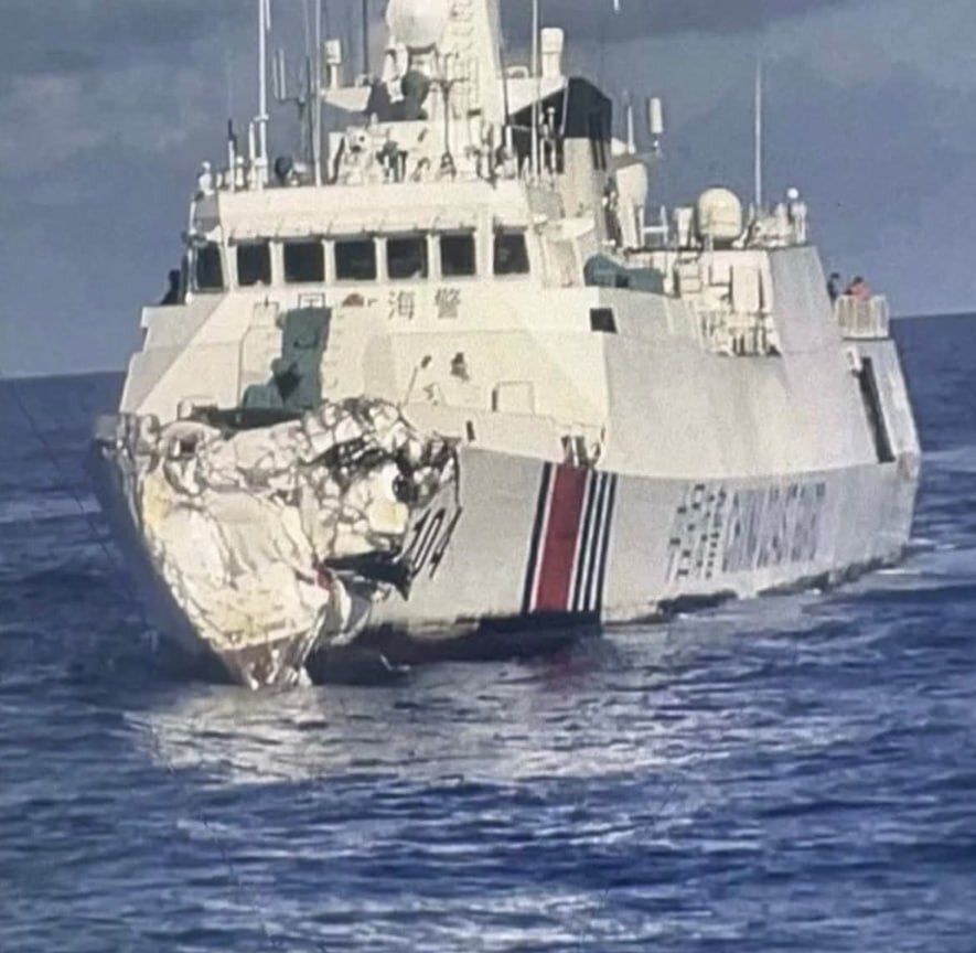 Толерантные филиппинцы предложили медицинскую помощь пострадавшему экипажу, пытаясь снизить градус и делая вид, что мы здесь ни при чем.Экипаж патрульного корабля "Сулуан" (MRRV-4406) Береговой охраны Филиппин доволен тем, что смог уйти сегодня от погони и столкнуть два китайских судна.Что стало с носовой частью корабля береговой охраны Китая после столкновения с эсминцем ВМС НОАК.