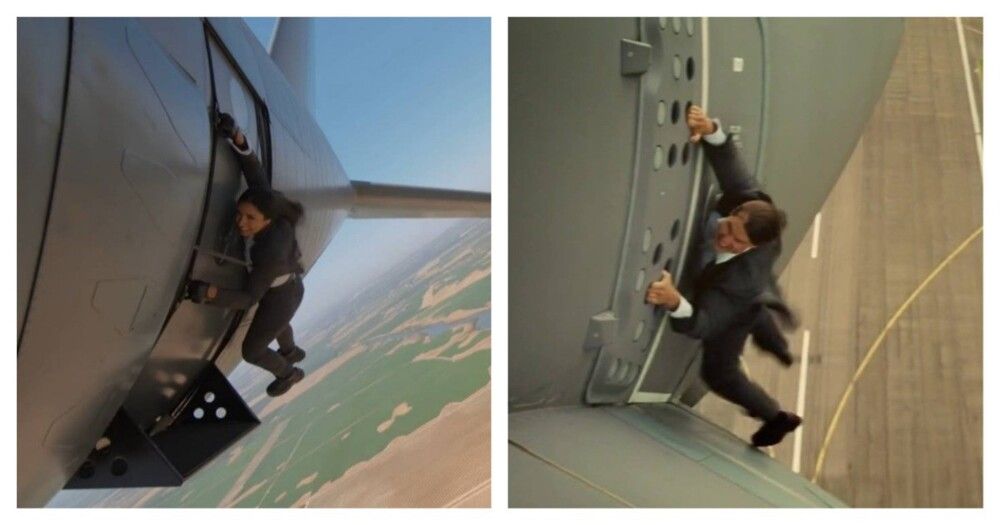 На высоте около 600 метров она держалась за борт C-130 "Hercules" без очков и парашюта - только со специальными линзами. Если бы что-то пошло не так, единственный план "Б" заключался в том, чтобы успеть открыть люк и затащить девушку в самолёт. На подготовку трюка ушло полгода.Полная версия видео. Трюк с 32:16