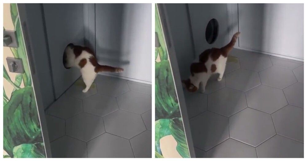 Кошке купили умный лоток, но она не поняла, как им пользоваться. Хозяин запечатлел пару походов животного в туалет.