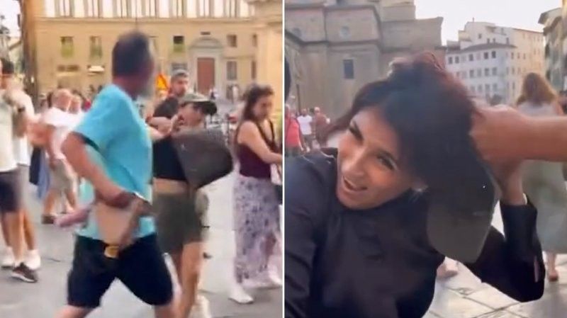 Инцидент произошел на площади Сан-Лоренцо во Флоренции, Италия. Молодая женщина выхватила у путешественницы сумку и попыталась сбежать, однако муж отдыхающей оттаскал злоумышленницу за волосы.На опубликованных в сети кадрах мужчина схватил преступницу и закричал по-итальянски: "Полиция". Уточняется, что девушка заявила о своем положении только после того, как ее поймали во время кражи. Подозреваемую арестовала полиция.