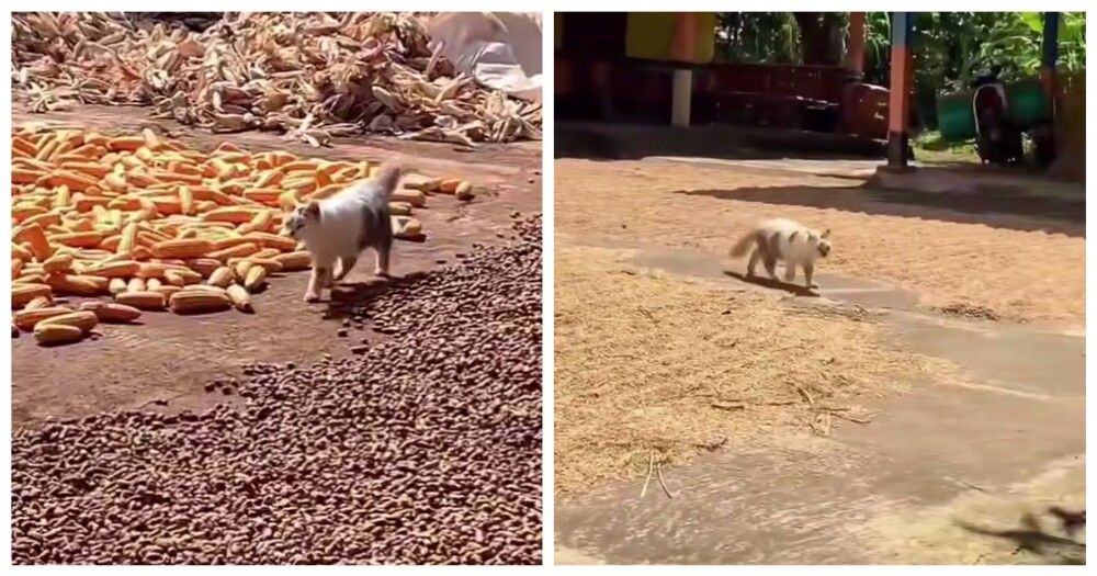 Бабушка наняла "охранного кота" для защиты кукурузы, разложенной на просушку после сбора. Пушистый внимательно и ответственно подошёл к работе.