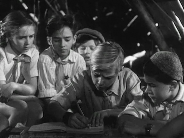 Девочка Женя приезжает на дачу и знакомится с пионером Тимуром - лидером тайной группы ребят, которые тайно помогают пожилым людям и семьям красноармейцев. Её старшая сестра Ольга, наслушавшись сплетен, считает Тимура хулиганом и запрещает Жене с ним общаться. На самом же деле Тимур и его команда ведут борьбу с настоящими хулиганами во главе с предводителем Квакиным.Кульминацией становится смелый поступок Тимура. Чтобы Женя, которая опоздала на поезд, могла на несколько минут увидеться с отцом перед его отъездом на фронт, Тимур угоняет мотоцикл своего дяди и отвозит её в Москву. Он прекрасно понимает, что рискует. Но для него помощь другу важнее последствий.Этот самоотверженный поступок раскрывает истинную сущность Тимура. Ольга наконец понимает, что ошиблась в нём, и объясняет всё его дяде, который уже собирался наказать племянника. Фильм заканчивается проводами дяди Тимура в армию.В главных ролях - Ливий Щипачев, Петр Савин, Борис Ясень, Николай Кутузов, Екатерина Деревщикова, Марина Ковалева.Лично мне больше всего нравится именно эта версия, а не более поздняя. В этом фильме - веришь происходящему, так как он снимался в те годы, когда и происходят события.***Конечно, кто-то может спросить: "А где же ... такой фильм про школу?". Фильмов про школу в советское время было снято очень много. А здесь лишь 20 фильмов.Все эти фильмы имеют очень высокие оценки современных зрителей. А школьники - показанные в фильмах, совершенно разные: это и первоклассники, и выпускники, это и положительные герои, и отрицательные. Какие-то фильмы поднимают серьезные вопросы, а какие - призваны рассмешить зрителя.