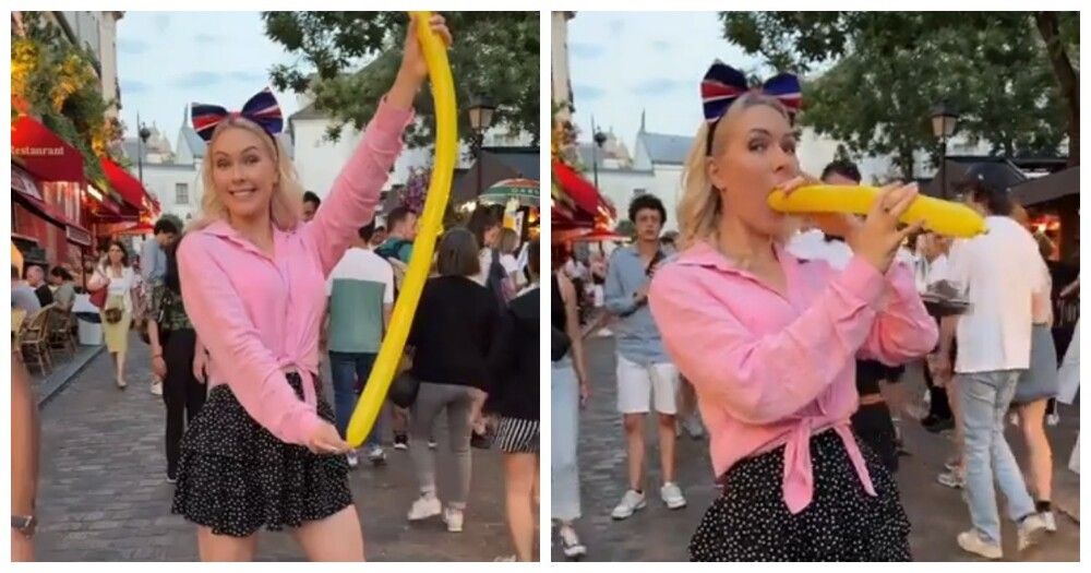 Девушка проглотила очень длинный воздушный шарик и даже не поперхнулась!
