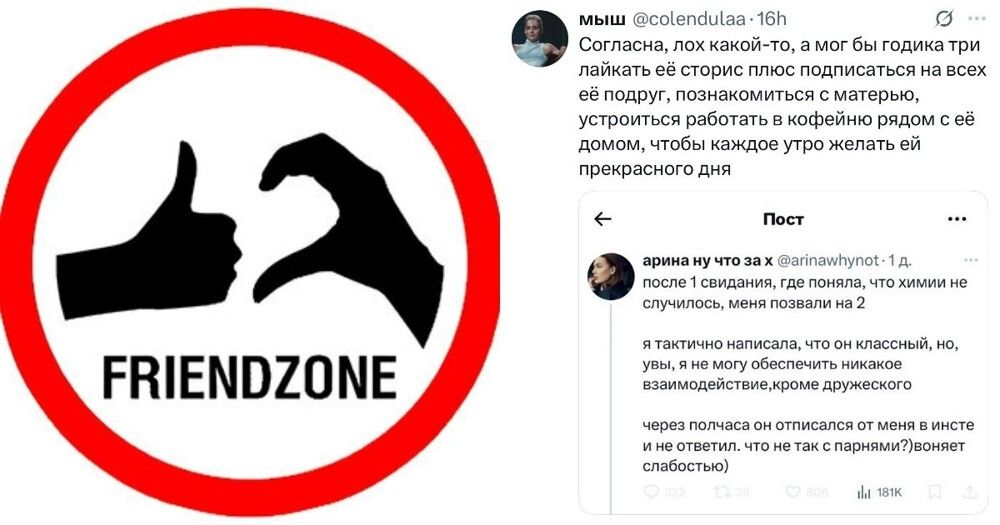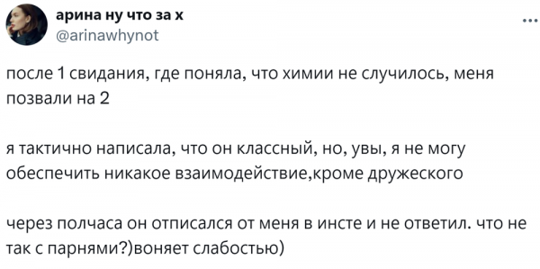 Отправила во френдозону после первого свидания, а потом ещё и недовольна, что он не отвечает и не стал…