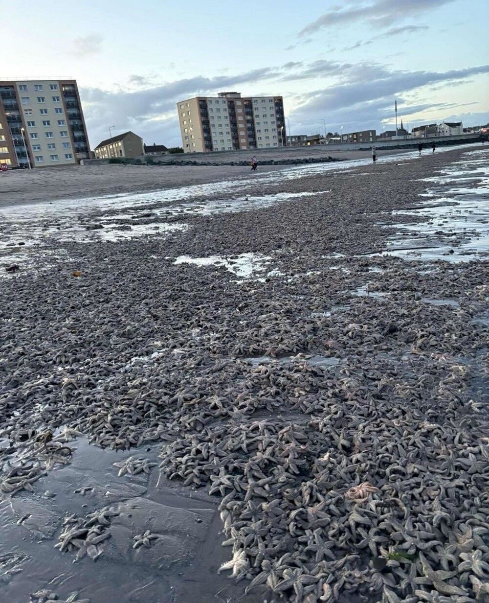 Жители Шотландии столкнулись с огромным количеством морских звёзд, которых выбросило на берег. Специалисты пока не могут назвать точные причины подобного явления.