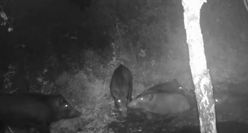В Тюменской области в объектив фотоловушки попали кабаны, которые принимали грязевые ванны.